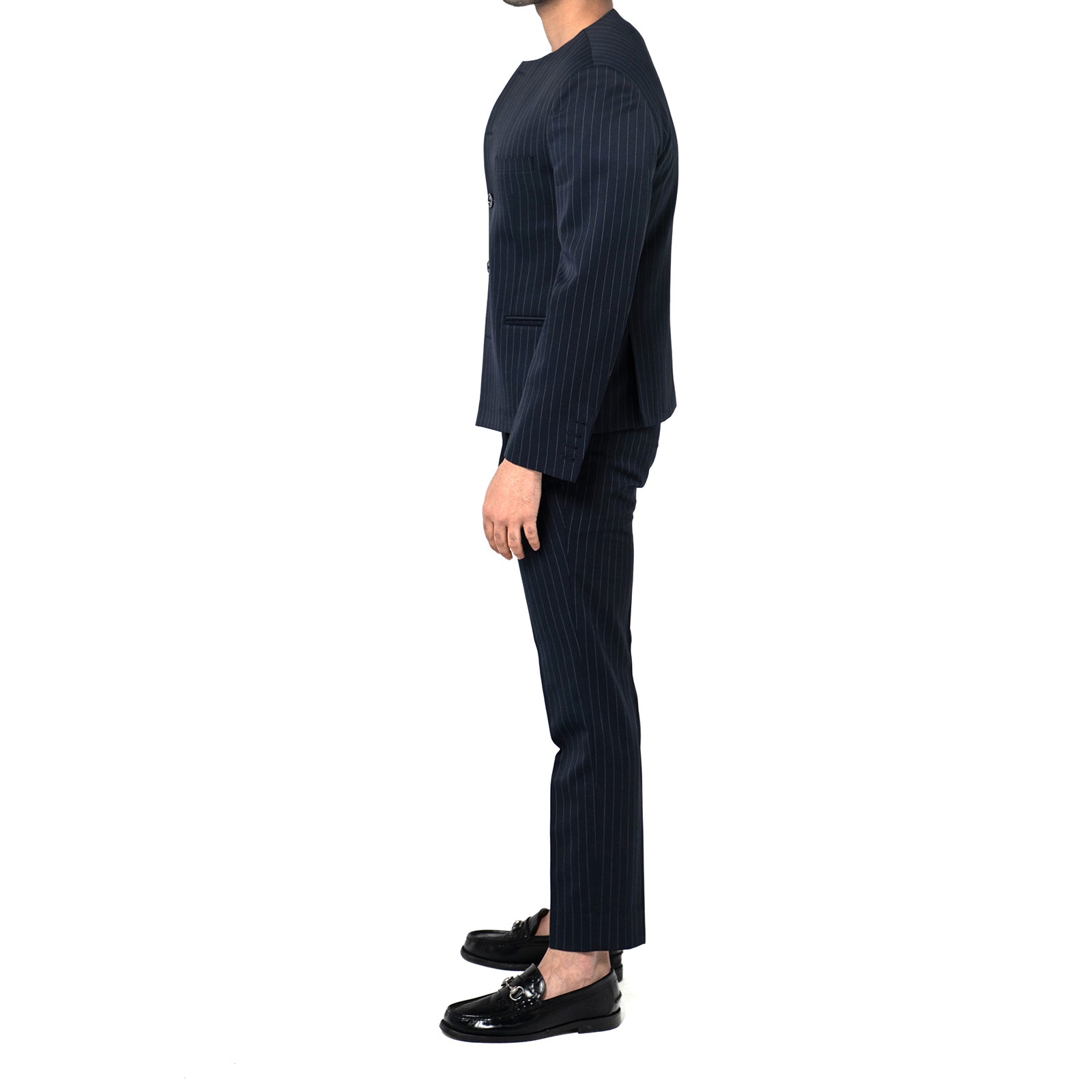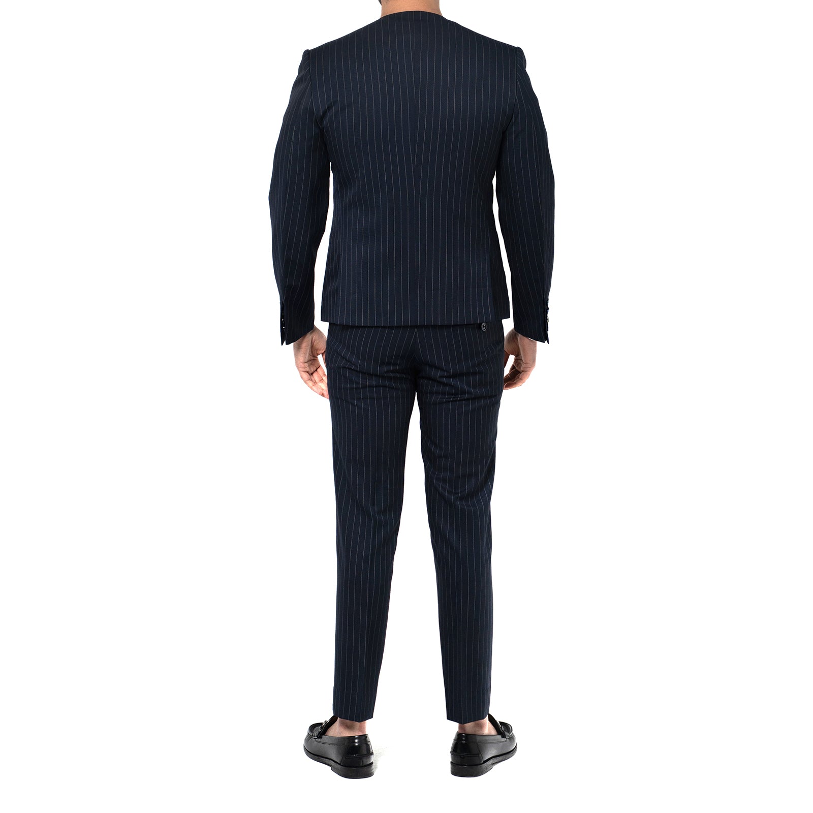 | Fabric: | Black base with a shiny navy pinstripe—classic pattern with modern finish |