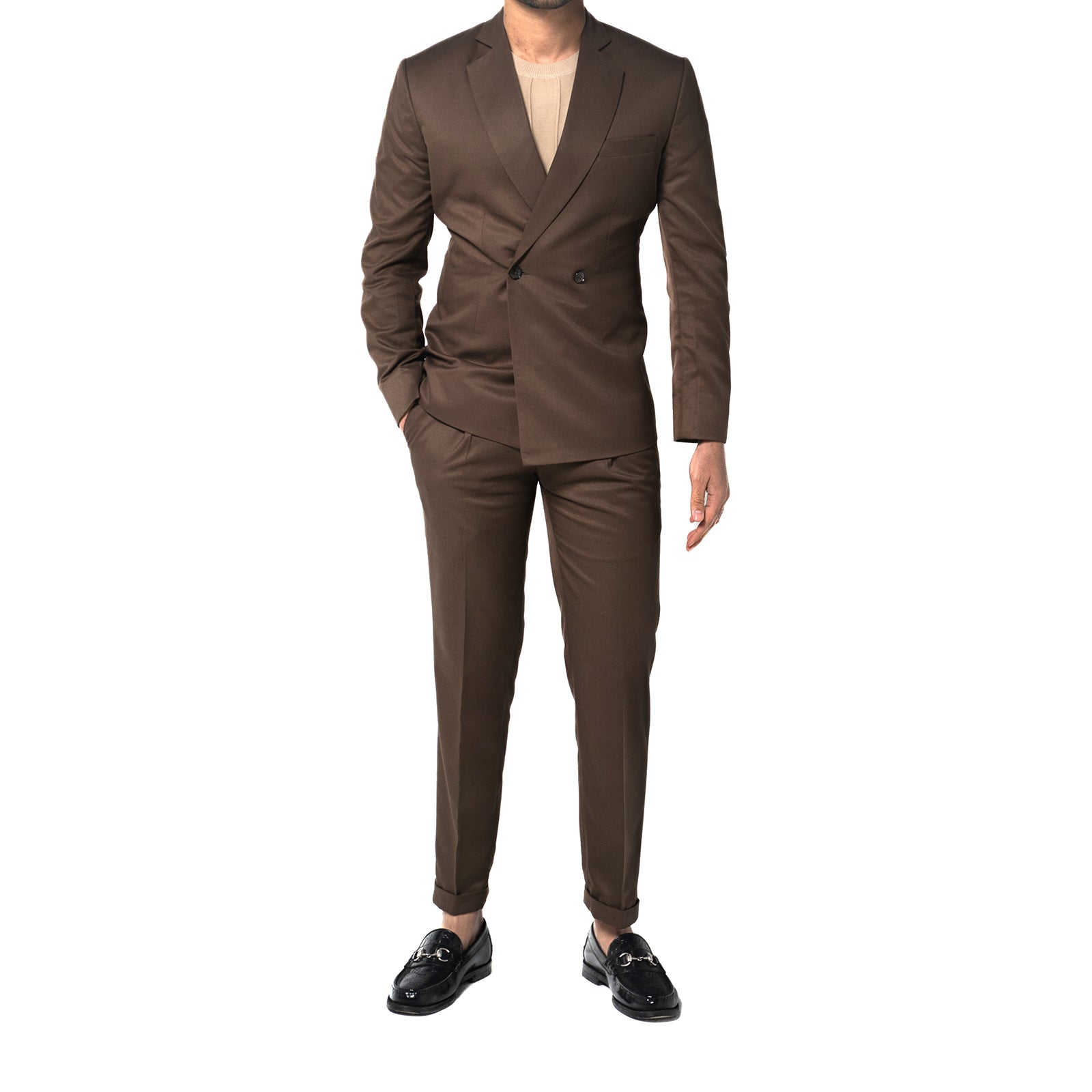 Rooted in tradition, reimagined in tone. The Ivy League – Cacao Brown brings warmth and weight to modern tailoring. Its unique one-button, double-breasted shirt jacket offers a minimalist silhouette with no pockets to interrupt the line—just smooth structure, soft strength, and quiet confidence. The deep cacao brown hue grounds the look in richness, making it perfect for fall layering or tonal styling. Paired with double-pleated trousers featuring a double-button waistband and waist adjusters, this is the set that goes from lecture hall to rooftop bar without missing a beat.