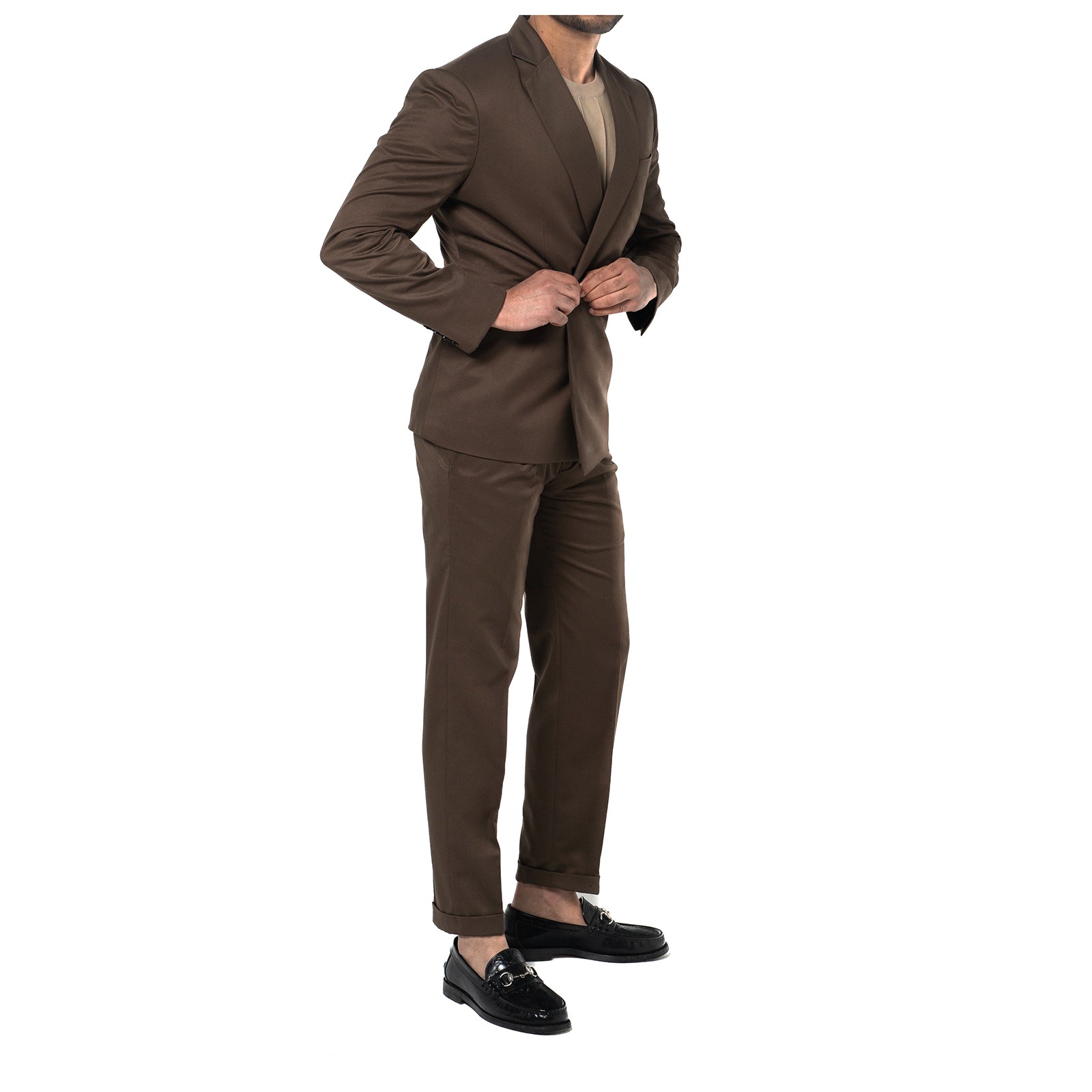 | Fabric: | Cacao brown suiting cloth with natural drape and depth |