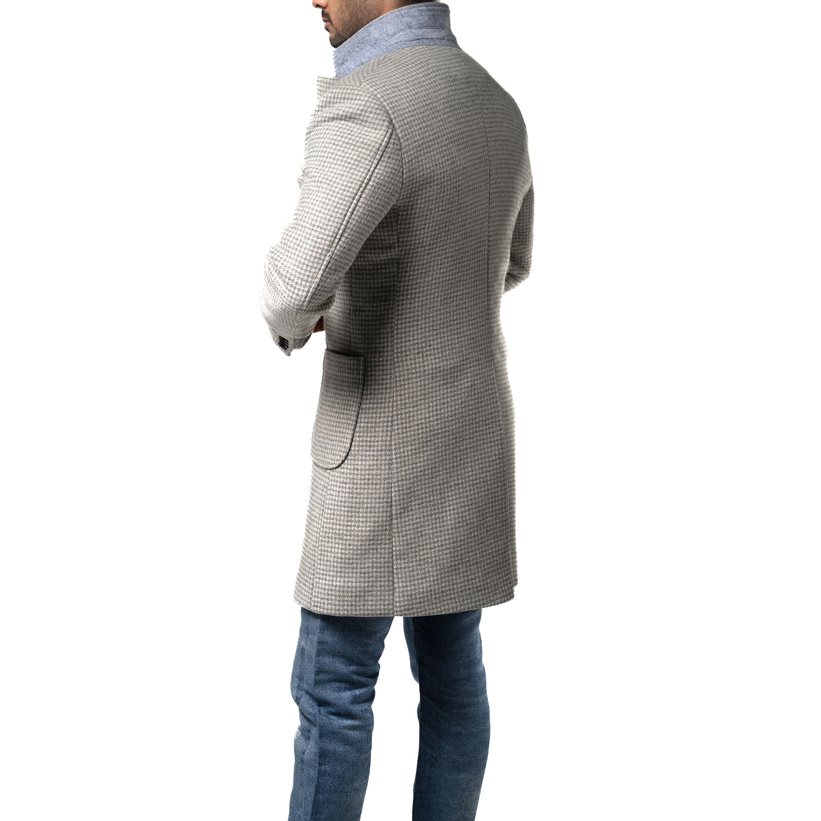 The Soho Grand Long Coat – Light Grey Houndstooth